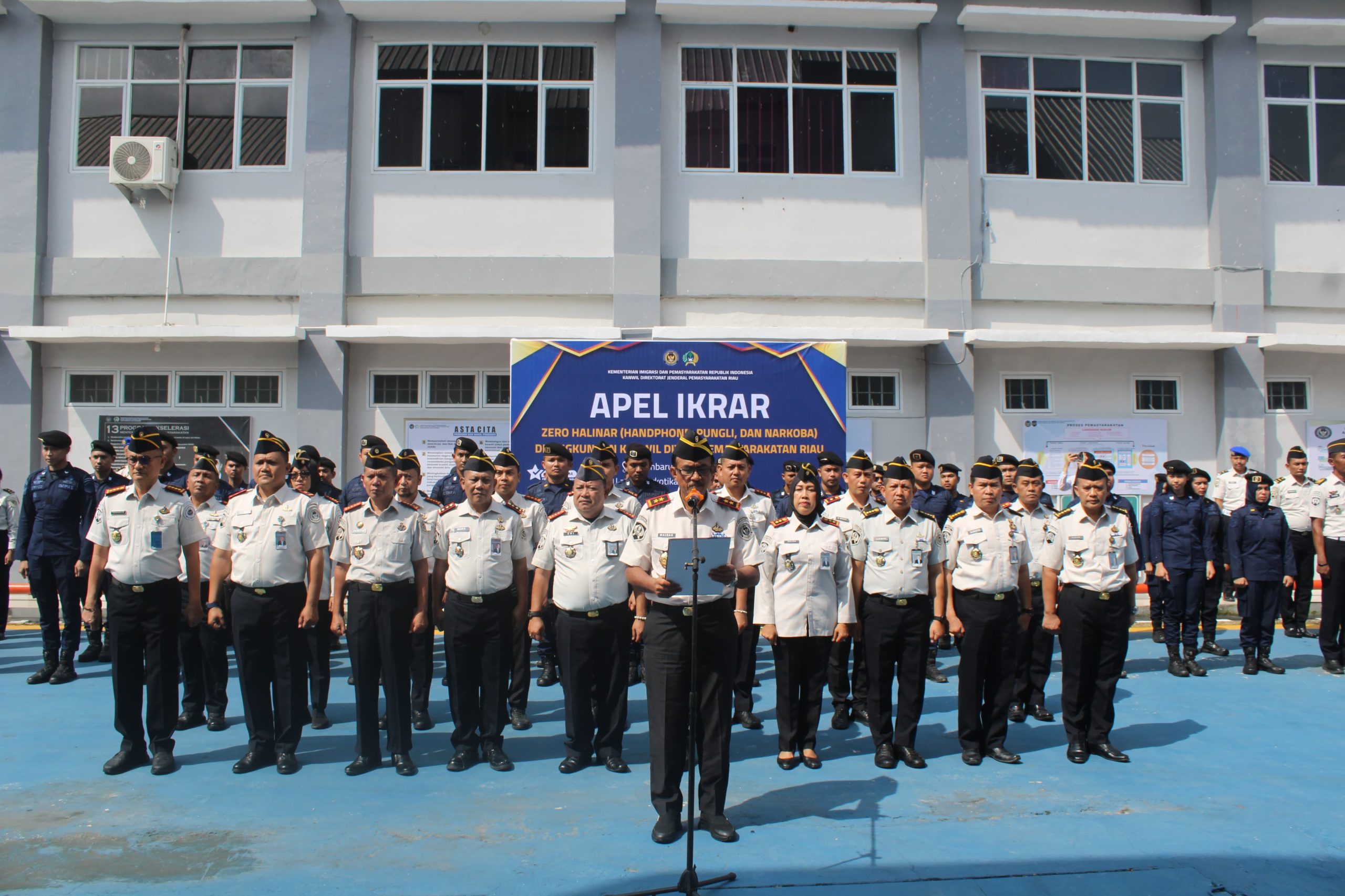 Pekanbaru,sahabatadhyaksa.com- Dalam rangka memperkuat komitmen terhadap pemberantasan HALINAR (Handphone, Pungli, dan Narkoba), Kantor Wilayah Direktorat Jenderal Pemasyarakatan Riau melaksanakan Apel Ikrar Zero HALINAR yang diikuti oleh seluruh jajaran, Selasa (21/4/26)