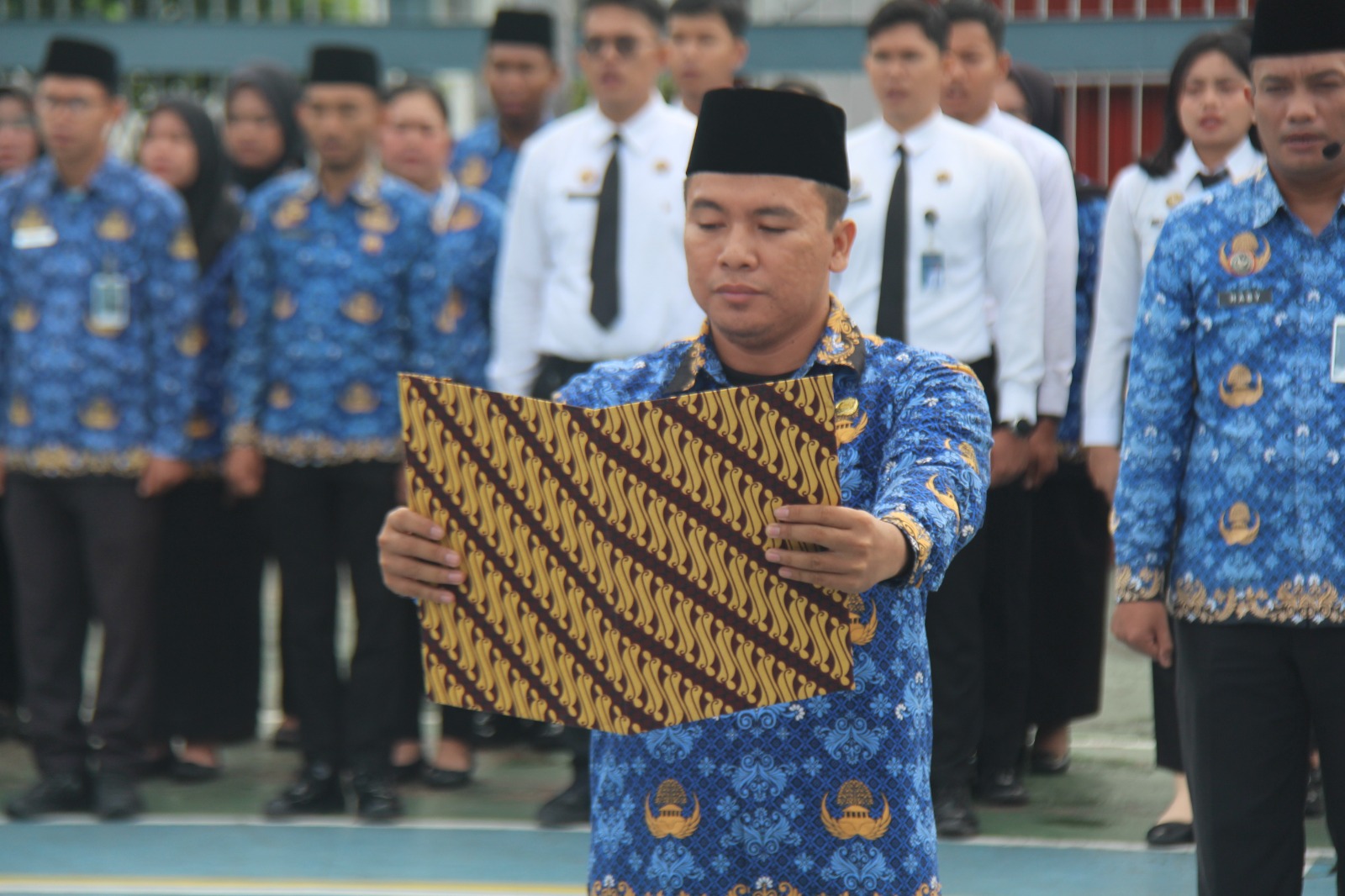 Upacara peringatan Hari Bela Negara ke-77 di Lapas Kelas IIA Pekanbaru berlangsung tertib dan lancar hingga selesai. Melalui kegiatan ini, diharapkan semangat bela negara dapat terus tertanam dan diimplementasikan dalam kehidupan sehari-hari, khususnya dalam mendukung terciptanya Pemasyarakatan yang aman, tertib, dan berintegritas.