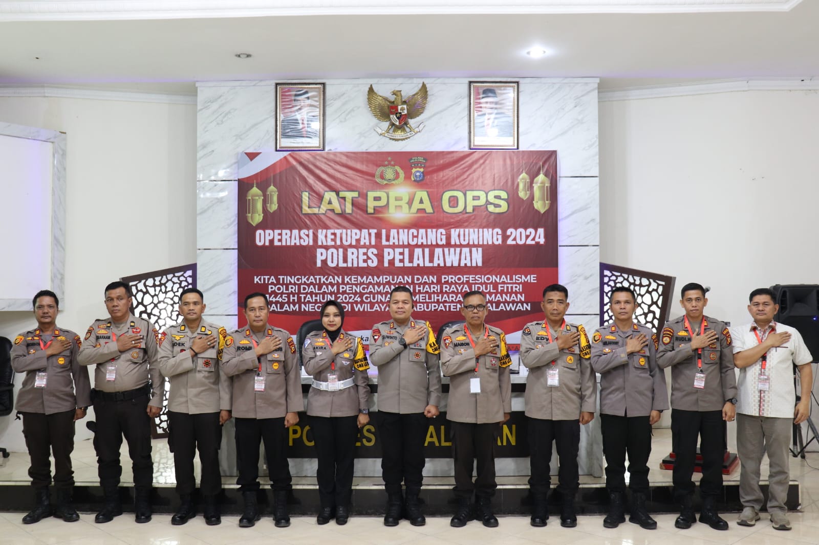 Kapolres Pelalawan AKBP Suwinto, S.H, S.I.K di dampingi Kasat Lantas Polres Pelalawan AKP Akira Ceria, S.I.K, M.M. dalam arahannya Kapolres Pelalawan Akbp.Suwinto.SH.SIK mengatakan, ada 5 pos yang akan dibuat dan disebar disejumlah Kecamatan di Kabupaten Pelalawan pada pelaksanaan Operasi Ketupat Lancang Kuning 2024 yang akan berlangsung mulai tanggal 4 hingga 16 April 2024 mendatang.