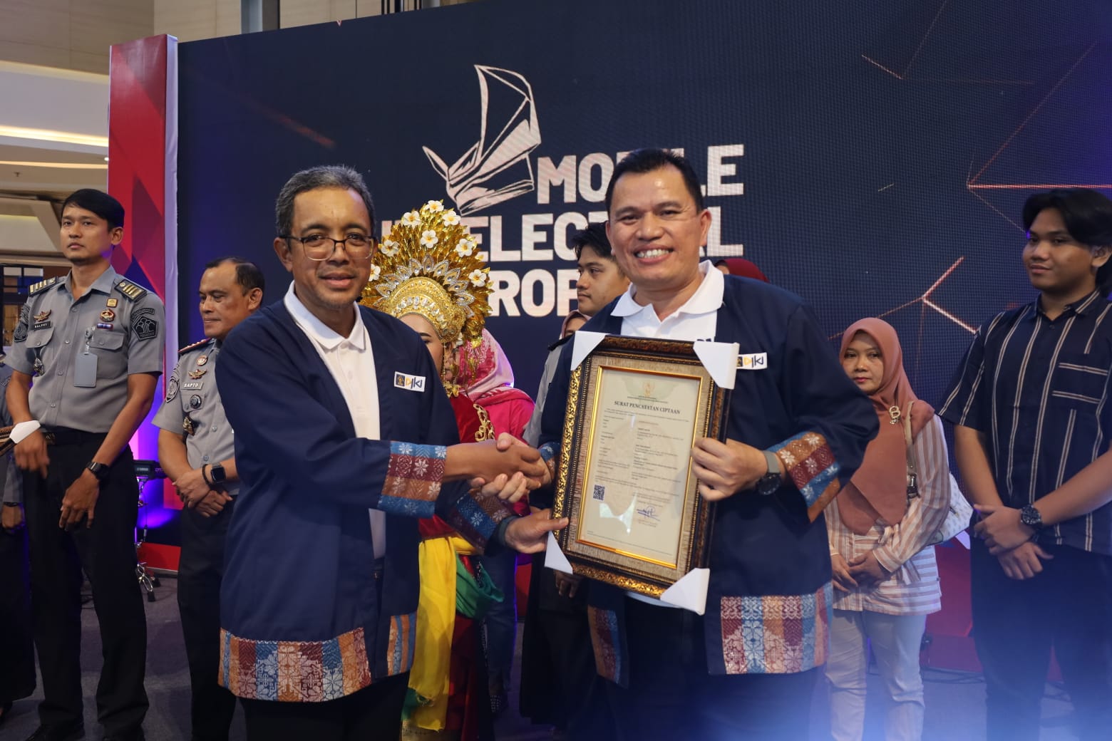 Selain itu Asep Kurnia yang turut didampingi Budi Argap Situngkir juga menyerahkan Sertifikat Kekayaan Intelektual kepada pemilik Hak Cipta lagu, karya tulis, seni umum serta merek.