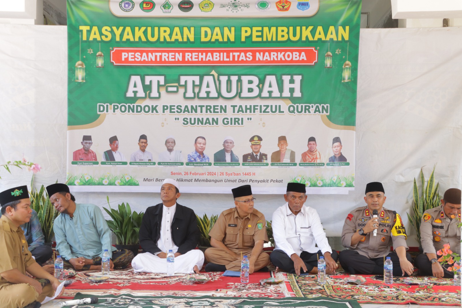 Kapolres Inhu, dalam sambutannya saat peresmian Ponpes rehabilitasi narkoba mengucapkan terima kasih banyak atas undangan peresmian Ponpes rehabilitasi narkoba dan mengapresiasi seluruh pihak yang berperan atas terbentuknya Ponpes rehabilitasi narkoba pertama di Kabupaten Inhu.