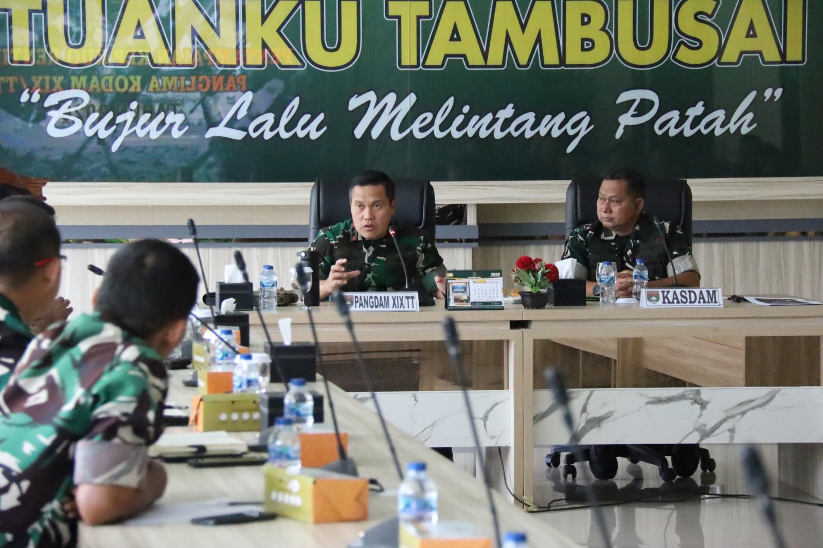 Pangdam XIX/Tuanku Tambusai dalam arahannya menekankan pentingnya kesiapsiagaan seluruh satuan serta optimalisasi perencanaan yang terintegrasi dan adaptif terhadap dinamika situasi di lapangan. Sinergi antar satuan dan koordinasi lintas instansi menjadi kunci utama dalam keberhasilan pelaksanaan setiap operasi.