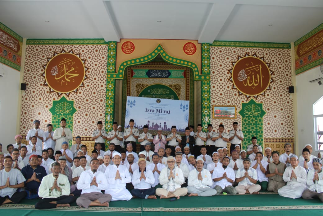 Pekanbaru,sahabatadhyaksa.com– Lapas Narkotika Kelas IIB Rumbai memperingati Isra Mikraj Nabi Muhammad SAW dengan menggelar kegiatan tausiah keagamaan yang bertempat di Masjid At-Taubah Lapas Narkotika Rumbai. Kegiatan ini diikuti oleh Kepala Bidang Pelayanan dan Pembinaan Kanwil Ditjenpas Riau, Suroto yang didampingi langsung oleh Kepala Lapas Narkotika Kelas IIB Rumbai, Reinhards Indra Pitoy, pejabat struktural, jajaran petugas, serta Warga Binaan Pemasyarakatan (WBP) yang mengikuti kegiatan santri di Lapas dengan penuh khidmat dan antusias (19/01/2026).