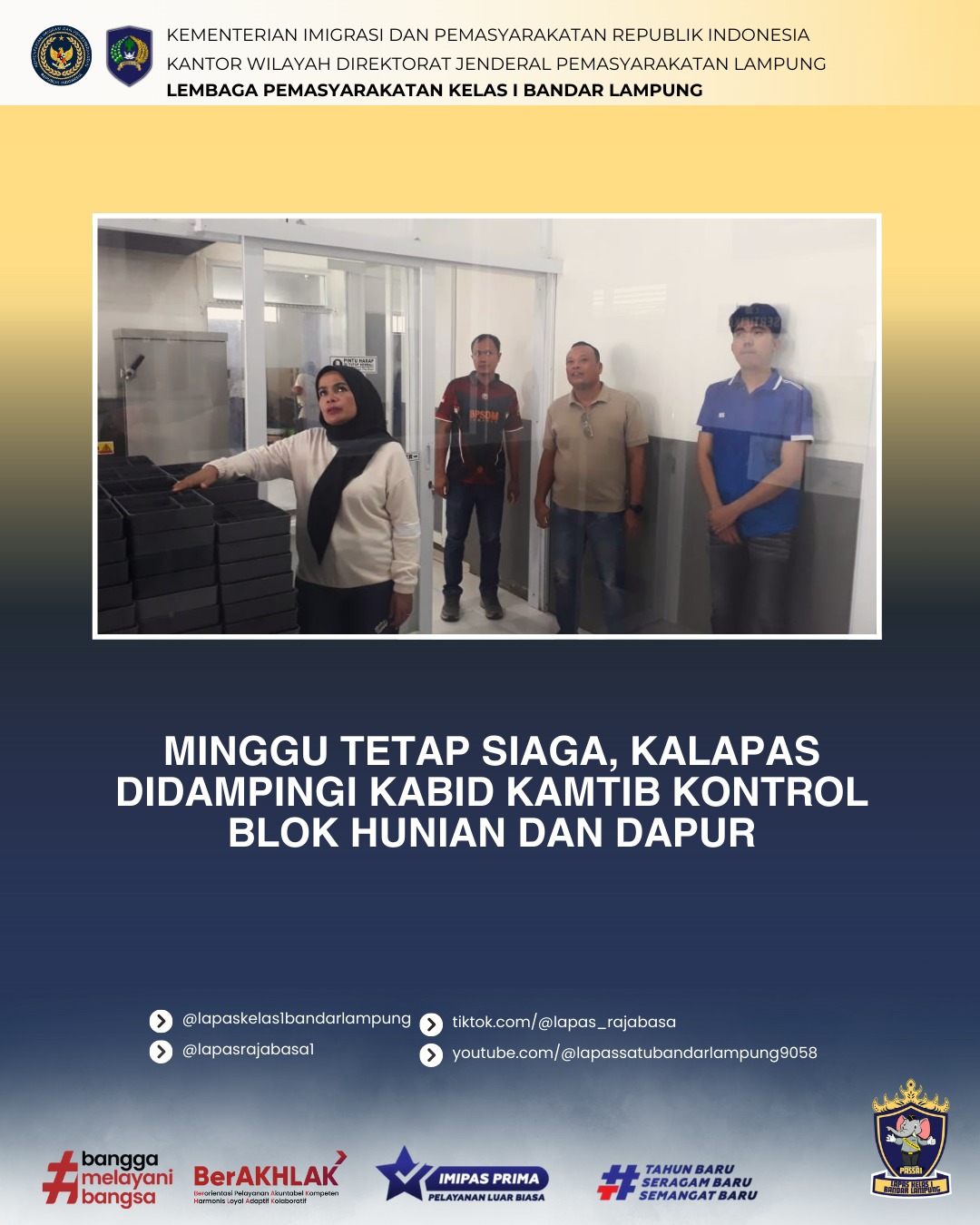 @pemasyarakatanlampung @ikerahmawatiofficial #lapaskelas1bandarlampung #pemasyarakatanpastibermanfaatuntukmasyarakat #Kemenimipas #KontrolHariLibur #DatMenda #KamtibPasti #DapurSehat #SiagaMinggu #BandarLampung