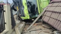 Mengalami Peca Ban Mobil Angkutan Batu Bara Terbalik Timpa Pagar Dan Rumah Warga Sekip Hilir Idragiri Hulu