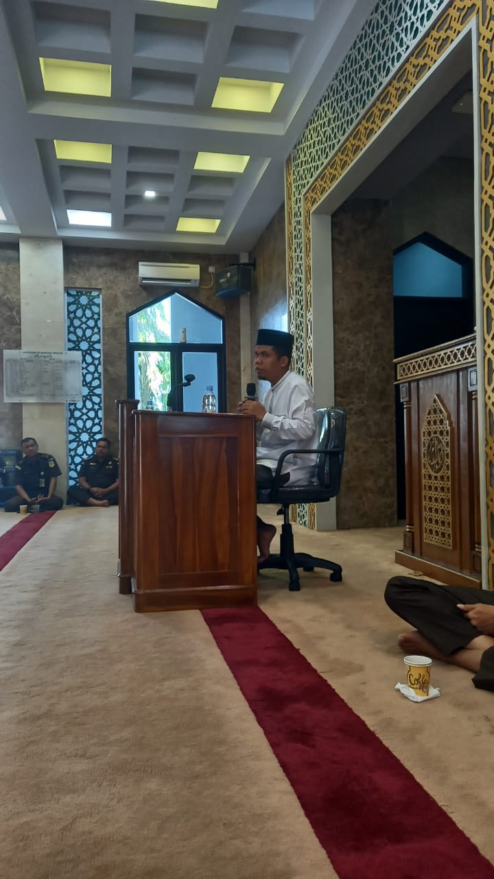 Pekanbaru, SahabatAdhyaksa.com – Senin tanggal 06 Mei 2024 sekira pukul 08.00 WIB s/d selesai bertempat di Masjid Al-Mizan Kejaksaan Tinggi Riau, telah dilaksanakan Pengajian Rutin yang disampaikan oleh Ust. H. Wandi Bustami, LC., MA yang diikuti oleh seluruh pegawai Kejaksaan Tinggi Riau yang beragama Islam.