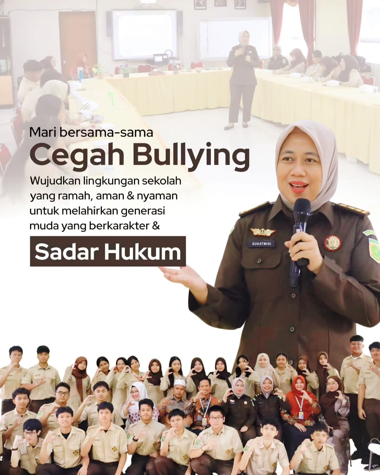 Mari bersama-sama cegah bullying, wujudkan lingkungan sekolah yang aman, nyaman, dan melahirkan generasi muda yang berkarakter serta sadar hukum.