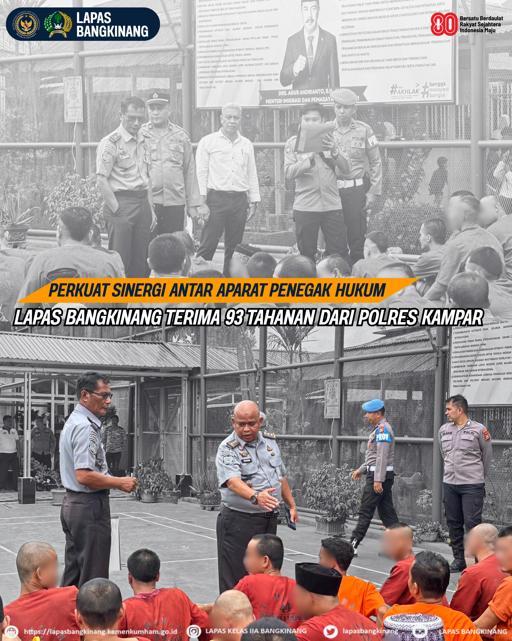 BANGKINANG, SahabatAdhyaksa.com – Dalam rangka memperkuat koordinasi dan sinergi antar lembaga penegak hukum, Lembaga Pemasyarakatan (Lapas) Kelas IIA Bangkinang menerima 93 tahanan dari Kepolisian Resor (Polres) Kampar, Senin (11/08/2025) pukul 10.00 WIB. Pemindahan ini dilakukan sehubungan dengan renovasi Rumah Tahanan (Rutan) Polres Kampar untuk meningkatkan kualitas dan keamanan fasilitas penahanan.