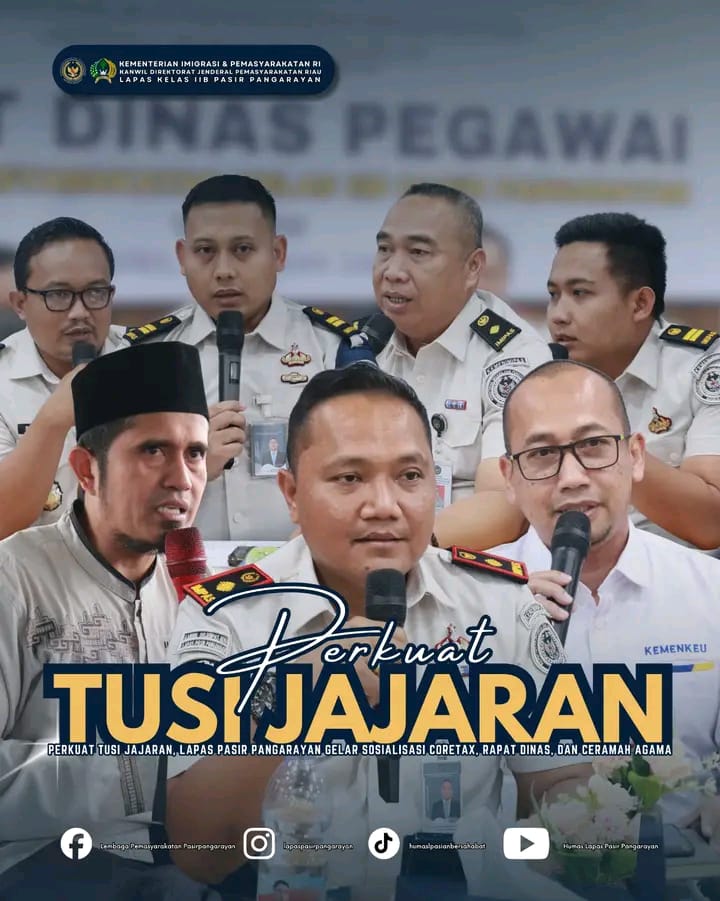 Pasir Pengaraian, sahabatadhyaksa.com- Lembaga Pemasyarakatan (Lapas) Kelas IIB Pasir Pangarayan melaksanakan tiga agenda kegiatan sekaligus dalam rangka meningkatkan kapasitas pegawai, penguatan kinerja organisasi, serta pembinaan mental spiritual, Senin (9/2/2026). Kegiatan tersebut meliputi sosialisasi pelaporan SPT Tahunan melalui Coretax, rapat dinas jajaran, serta ceramah agama menyambut Bulan Suci Ramadan 1447 H.