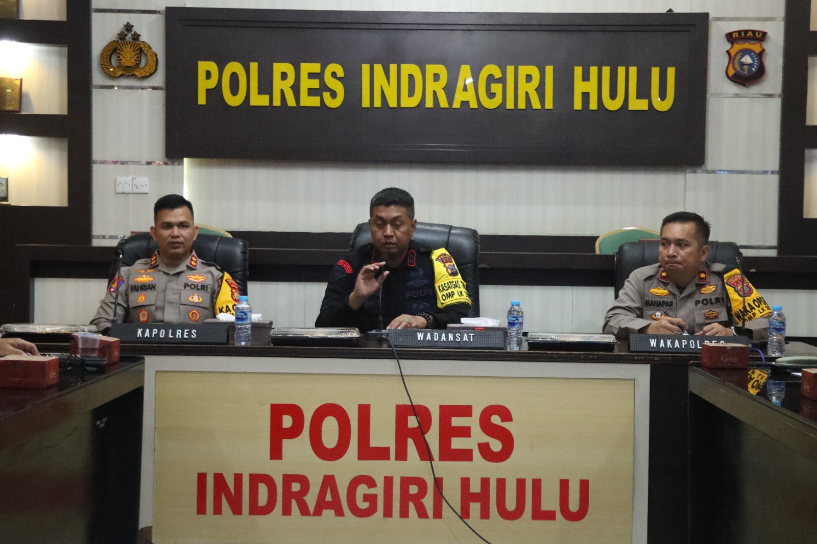 Kapolres menjelaskan bahwa tim yang dipimpin oleh Wakil Komandan Satuan (Wadansat) Brimobda Riau AKBP M. Aries Purwanto, S.I.K., M.M., datang dan langsung memberikan pengarahan kepada Kasatgas OMP, PJU, serta Kapolsek yang mengikuti melalui virtual di ruang Sanika Satyawada Polres Inhu.