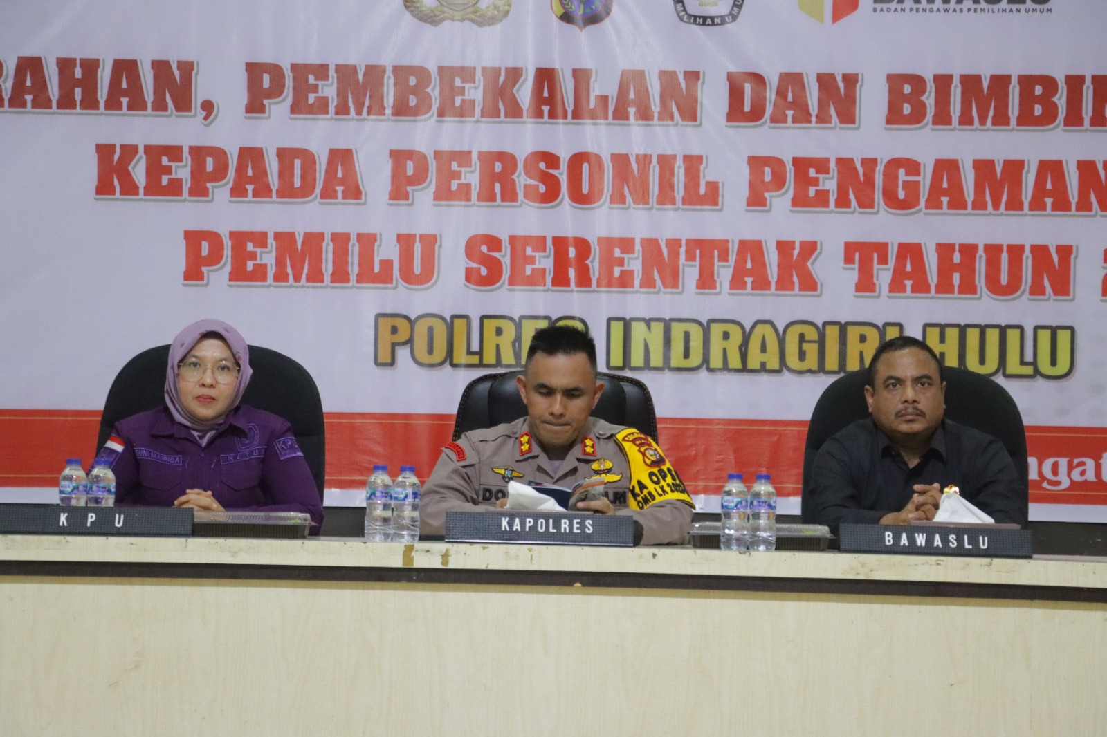 Kegiatan tersebut dipimpin langsung oleh Kapolres Inhu, kemudian pembekalan, pemberian materi serta Bimtek, juga disampaikan oleh Ketua KPU Inhu dan Ketua Bawaslu Inhu.