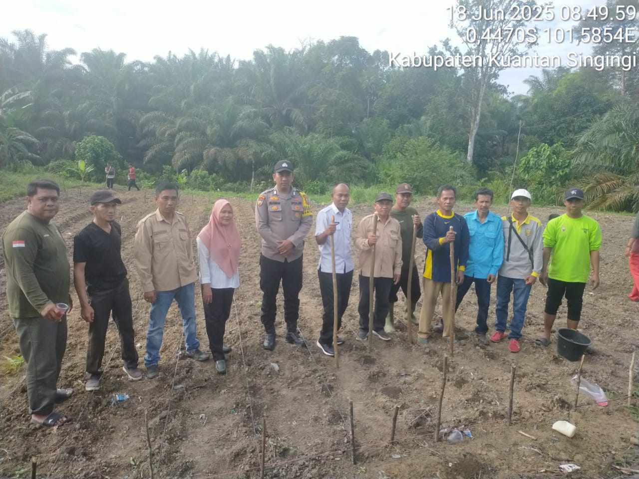 KUANTANSINGINGI, SahabatAdhyaksa.com – Dalam rangka mendukung program Swasembada Pangan Nasional Tahun 2025, Polres Kuantan Singingi melalui Polsek Benai melaksanakan kegiatan penanaman jagung pipil di lahan perkebunan ketahanan pangan Desa Parit Teratak Air Hitam, Kecamatan Sentajo Raya, Kabupaten Kuantan Singingi, pada Rabu, (18/6/2025).