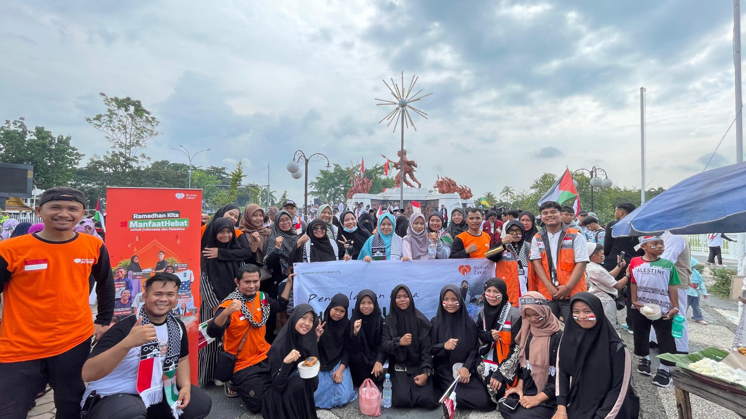 Rumah Zakat, sebagai organisasi filantropi terdepan di Indonesia, turut berpartisipasi aktif dalam aksi ini. Kehadiran Rumah Zakat diwujudkan dengan membuka Layanan kesehatan, pos segar, menyediakan sarapan dengan olahan Super Qurban, dan menggalang donasi untuk membantu rakyat Palestina.