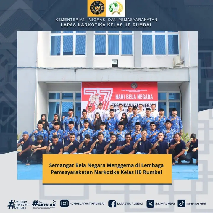 Peringatan Hari Bela Negara ini juga menjadi pengingat akan pentingnya membangun sumber daya manusia yang berkarakter, berwawasan kebangsaan, dan memiliki semangat pengabdian tinggi. Melalui kegiatan ini, Lapas Narkotika Rumbai berkomitmen untuk terus mengimplementasikan nilai-nilai bela negara dalam pelaksanaan tugas pemasyarakatan serta pembinaan WBP secara profesional, humanis, dan berintegritas.