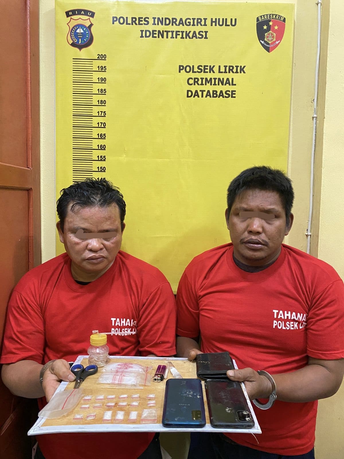 Dua pelaku yang berhasil diamankan adalah PL Alias Polo (48) , seorang petani asal Desa Redang Seko, dan RM alias MAN (35) asal Desa Ukui Dua, Kecamatan Ukui, Kabupaten Pelalawan. Keduanya diketahui merupakan residivis kasus narkotika.