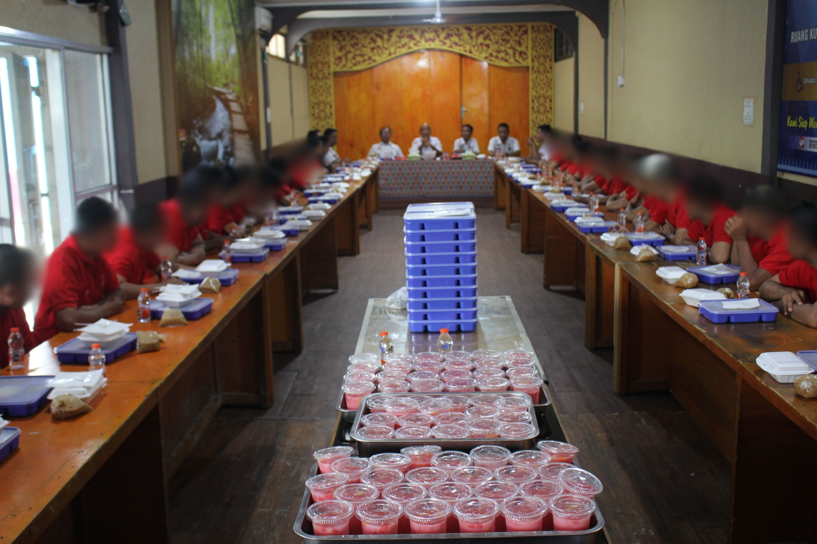 Berbeda dengan kegiatan sambung rasa pada umumnya, kali ini kegiatan sambung rasa dibalut dengan giat makan bersama seluruh jajaran Lapas Pekanbaru dan warga binaan. Bertempat di Ruang Kunjungan Lapas Pekanbaru kegiatan sambung rasa kali ini diikuti oleh perwakilan warga binaan blok A. Untuk seterusnya akan dilaksanakan secara berkala untuk seluruh warga binaan yang ada di blok hunian Lapas Kelas IIA Pekanbaru.