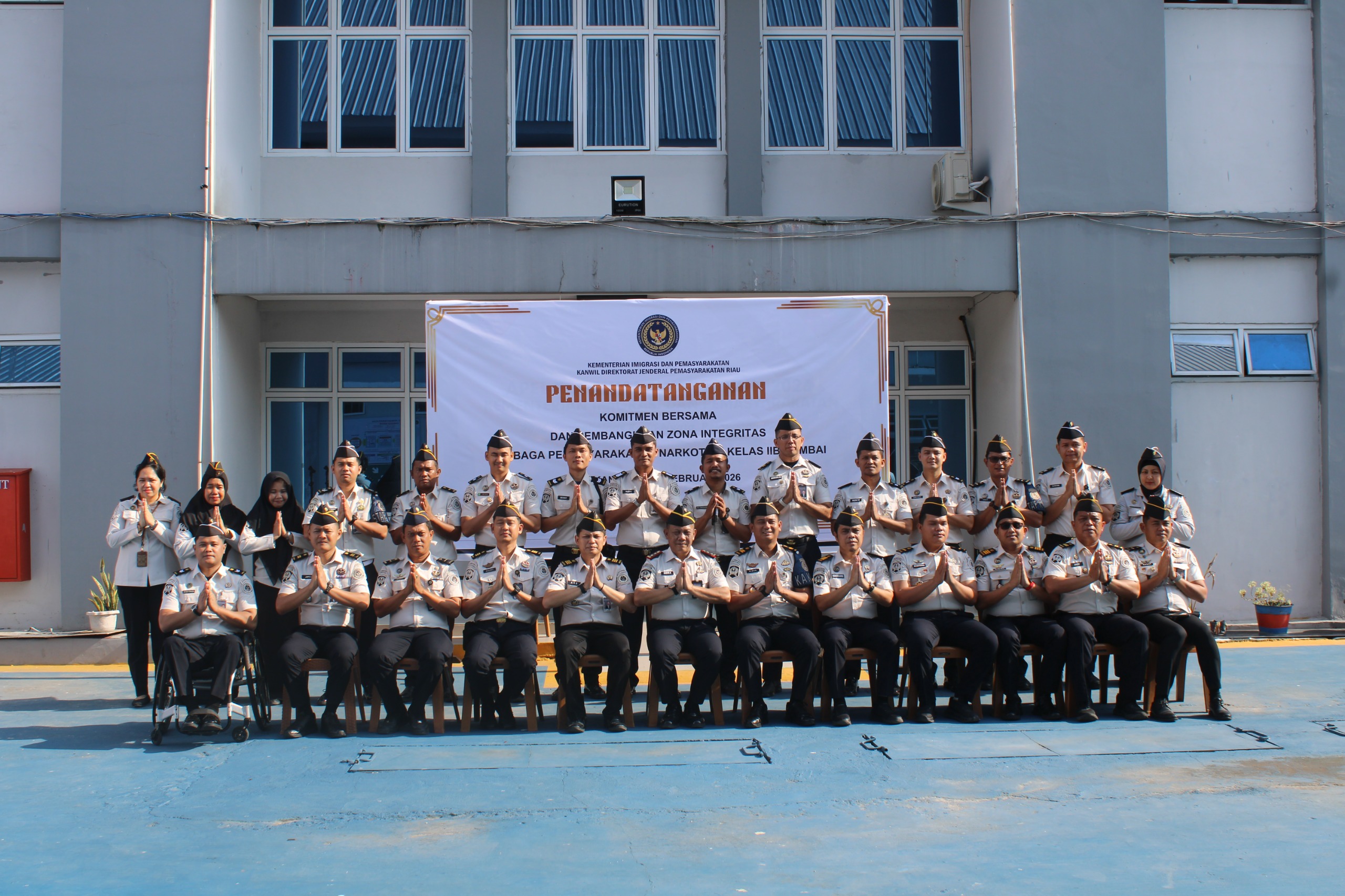 Kegiatan dilanjutkan dengan penandatanganan Komitmen Bersama Pembangunan Zona Integritas oleh Kepala Lapas Narkotika Rumbai beserta jajaran pejabat struktural, yang diikuti oleh seluruh pegawai.