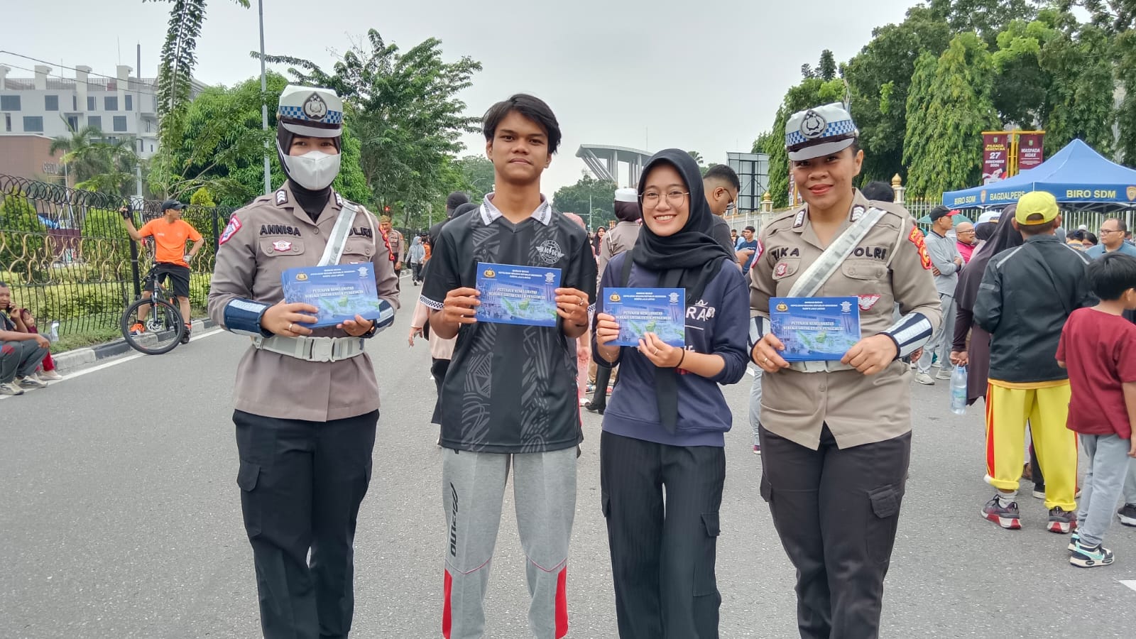 Pekanbaru,sahabatadhyaksa.com Kawasan Car Free Day (CFD) di Jl. Jend. Sudirman merupakan salah satu tempat tujuan utama untuk warga kota Pekanbaru untuk melaksanakan aktivitas olahraga, baik dengan keluarga, kerebat maupun rekan kerja lainnya. Namun pada Minggu Pagi tanggal 24 November 2024 sekira Pukul 06.30 WIB. Tim Cooling System Ditlantas Polda Riau yang dipimpin langsung Kasi Dikmas Subdit Kamsel Ditlantas Polda Riau AKBP Sunarti, S.H kembali menyapa para pengunjung CFD Pekanbaru dengan melaksanakan kegiatan edukasi himbauan Kamtibmas dan Kamseltibcarlantas, Minggu (24/11/24)