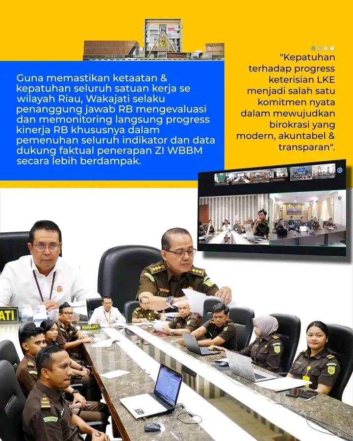 Pekanbaru,sahaabatadhyaksa.com – Wakajati Riau Edy Handojo, SH., MH., didampingi Asbin beserta Tim TPD mengikuti rapat Progress Keterisian LKE Pembangunan ZI Menuju WBK/WBBM pada Kejati Riau dan Kejari se-Wilayah Riau Tahun 2026 secara daring di Rupat Waka. (24/02/2026)